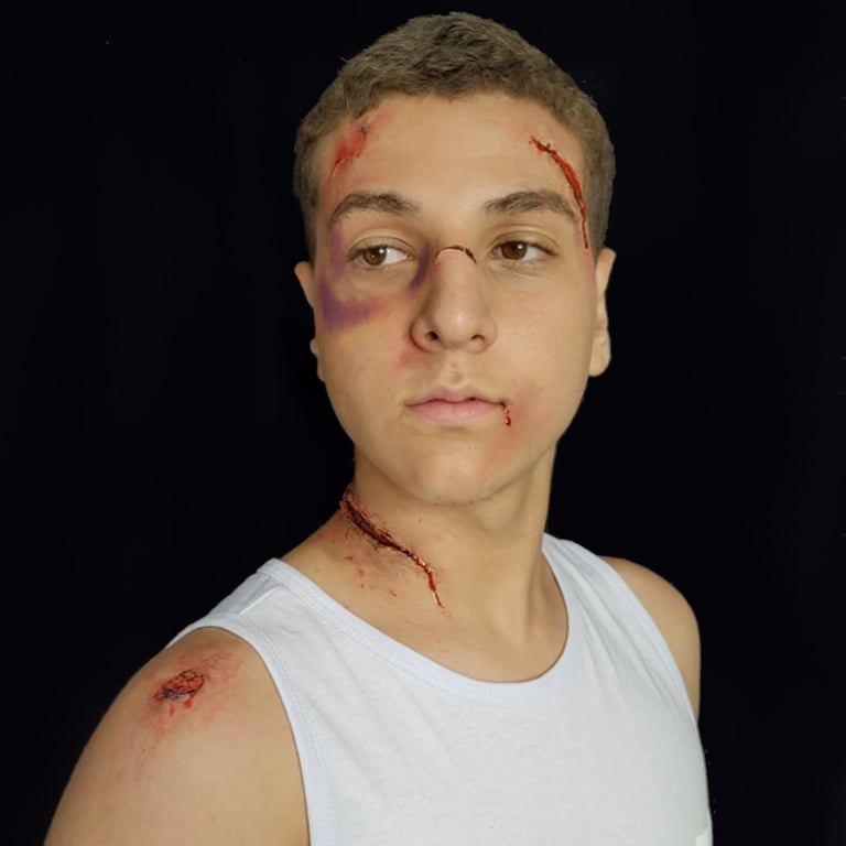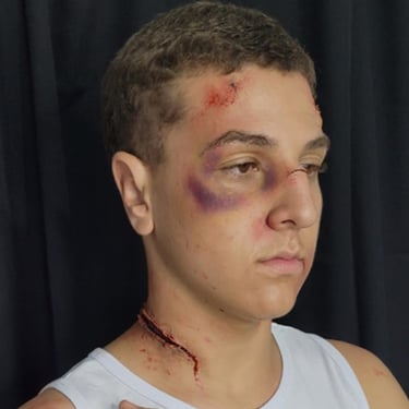 No curso de Criação de Ferimentos e Hematomas, você vai aprender técnicas fundamentais dos Efeitos Especiais, utilizadas diariamente por maquiadores em filmes, novelas, séries e espetáculos teatrais. São maquiagens que comunicam impacto, emoção e história — tudo através dos detalhes.