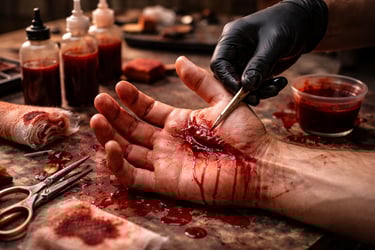 Aprenda a criar diferentes tipos de sangues cenográficos, entendendo as tonalidades, texturas e densidades.